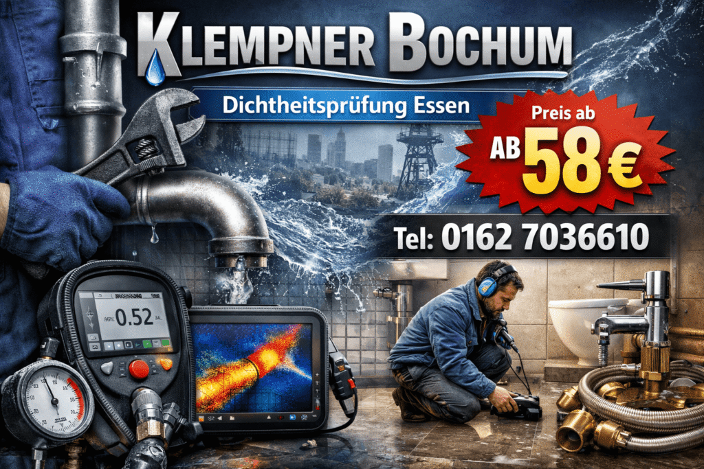 Gerade bei verzweigten Anlagen ist diese Kombination entscheidend; deshalb verweisen wir bei komplexeren Bestandsnetzen inhaltlich auch auf dichtheitsprüfung bochum, weil die dort erklärte Systematik identisch auf Essen übertragbar ist. Aus diesem Grund wird die dichtheitsprüfung essen bei uns als Klempner Essen stets als Diagnosekette und nicht als Einzelmessung verstanden.